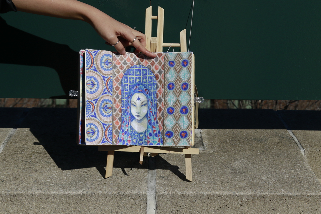 Color pencil on paper, collage